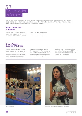 Aqualia stand at SIGA.                                   Maria Angeles Vicente during her talk at Smart Water Summit.