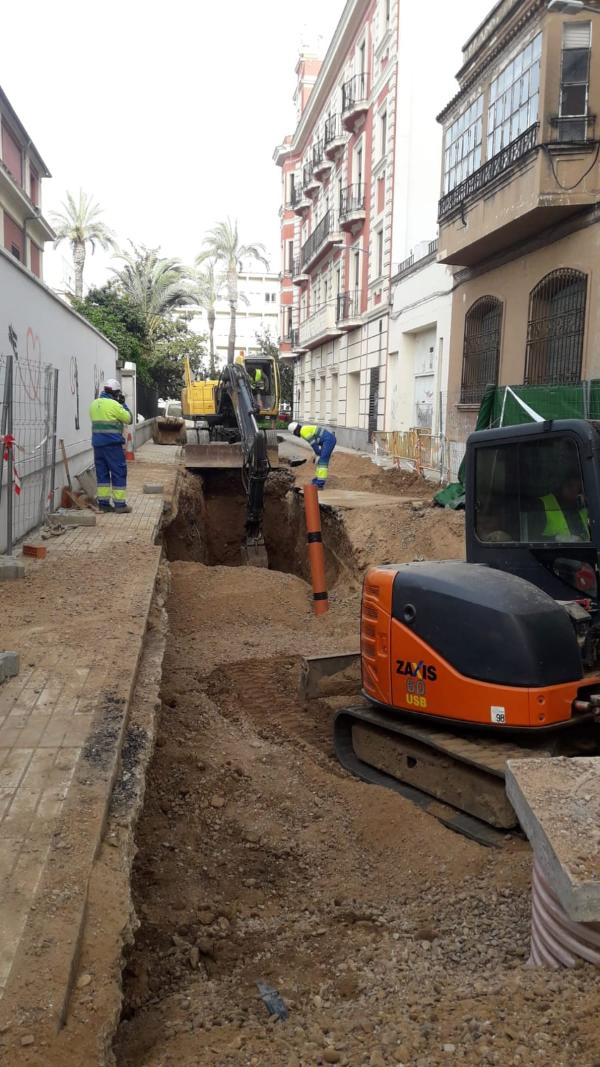 La empresa ha reparado hoy una rotura en la red de abastecimiento de la C/ Jacinta García Hernández y prosigue la ejecución de las obras de urgencia en la red de saneamiento de la C/ La Bomba
