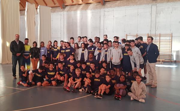 El polideportivo de Los Cardones acoge un charla educativa de la campaña #Nolotires dirigida a las categorías inferiores del CB Granadilla para concienciarles en el buen uso de la red de saneamiento