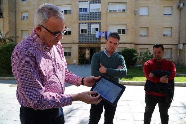 El alcalde de Rota visita el proyecto de lectura inteligente de contadores de agua en las 512 viviendas