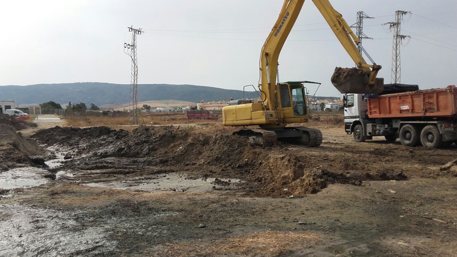 La acumulación de arenas y escombros irregulares en una explanada en la parte trasera del campo de fútbol de Zahara...