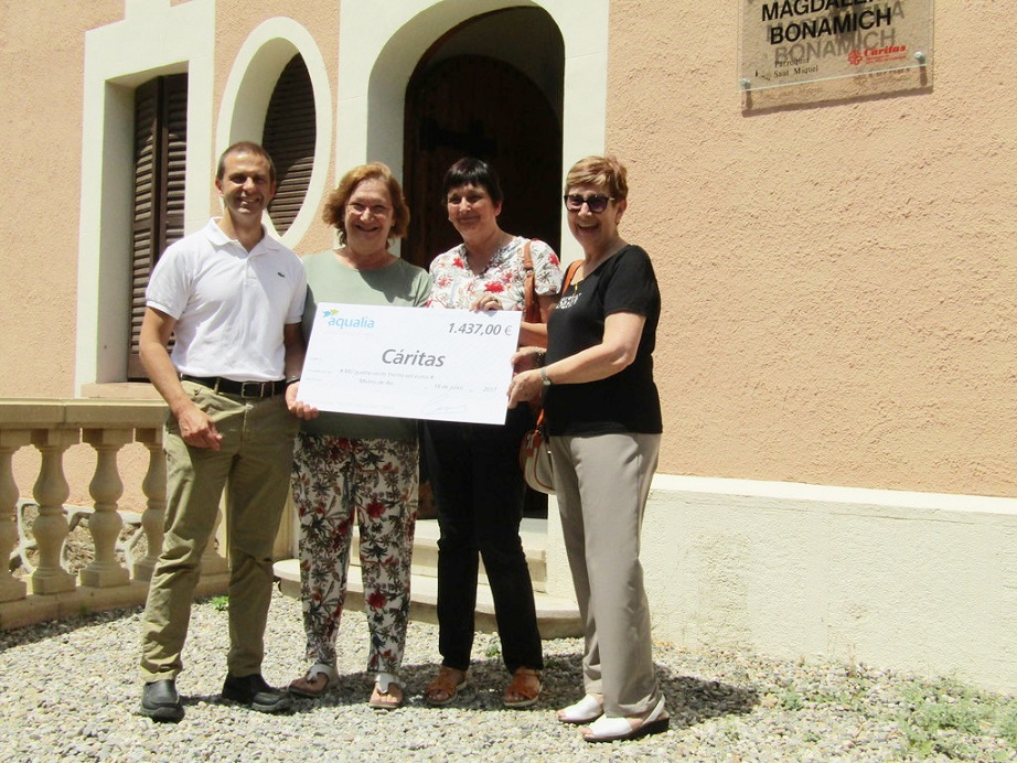 Manel Gómez, delegado de Barcelona-Girona de Aqualia, la empresa que gestiona el Servicio Municipal de Aguas de Molins de Rei, ha entregado a la subdirectora de Cáritas, Concha Marqués, un talón simbólico de la aportación de 1.437 euros que la empresa realiza, fruto del convenio de colaboración firmado entre ambas part...