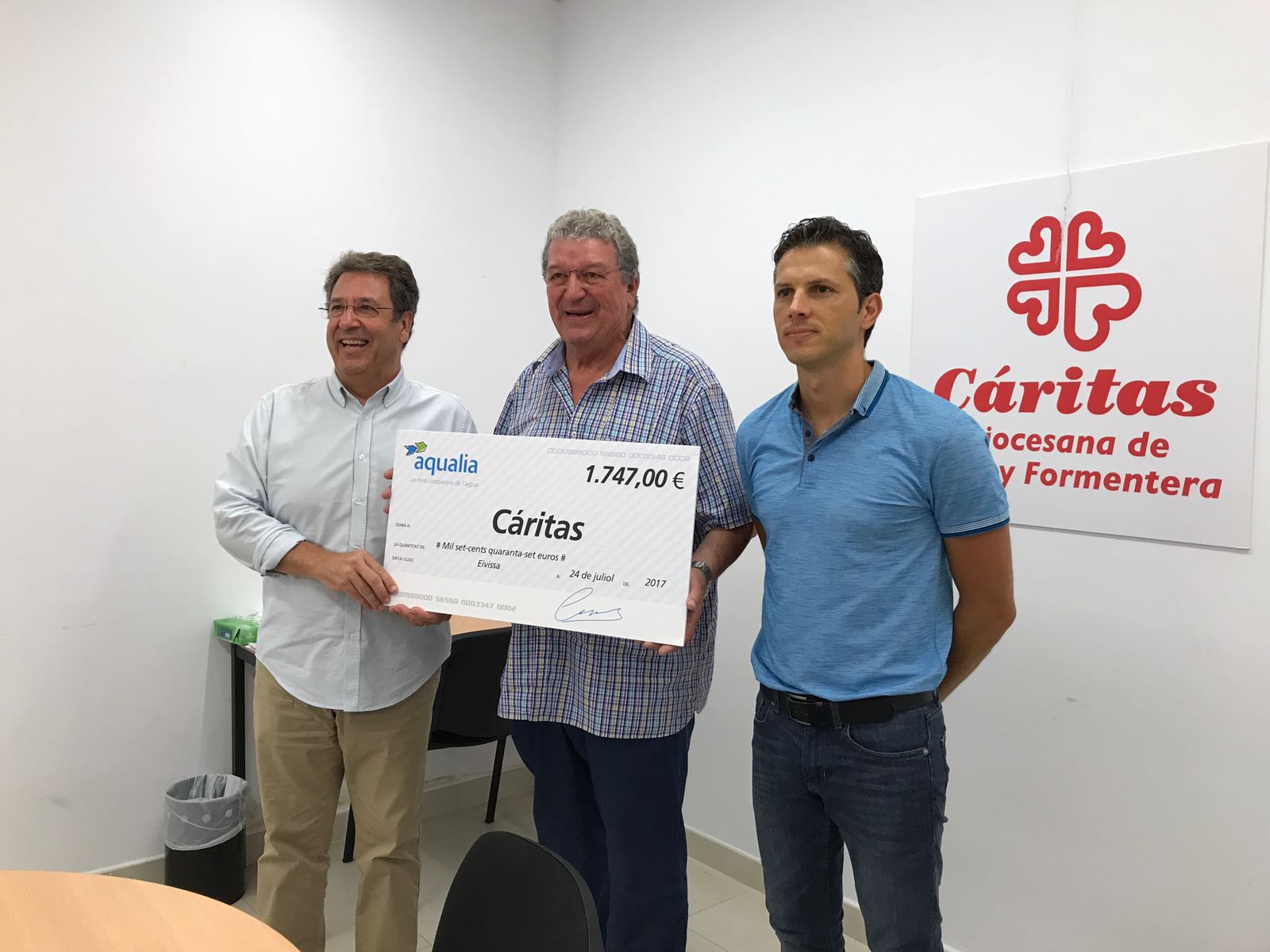 Eduardo del Castillo, director de la delegación de Baleares de Aqualia, ha entregado al director de Cáritas Ibiza, Joan Marí, un talón simbólico de la aportación de 1.747 euros que la empresa realiza, fruto del convenio de colaboración firmado entre ambas partes. Éste establece que Aqualia apoya las iniciativas de Cári...