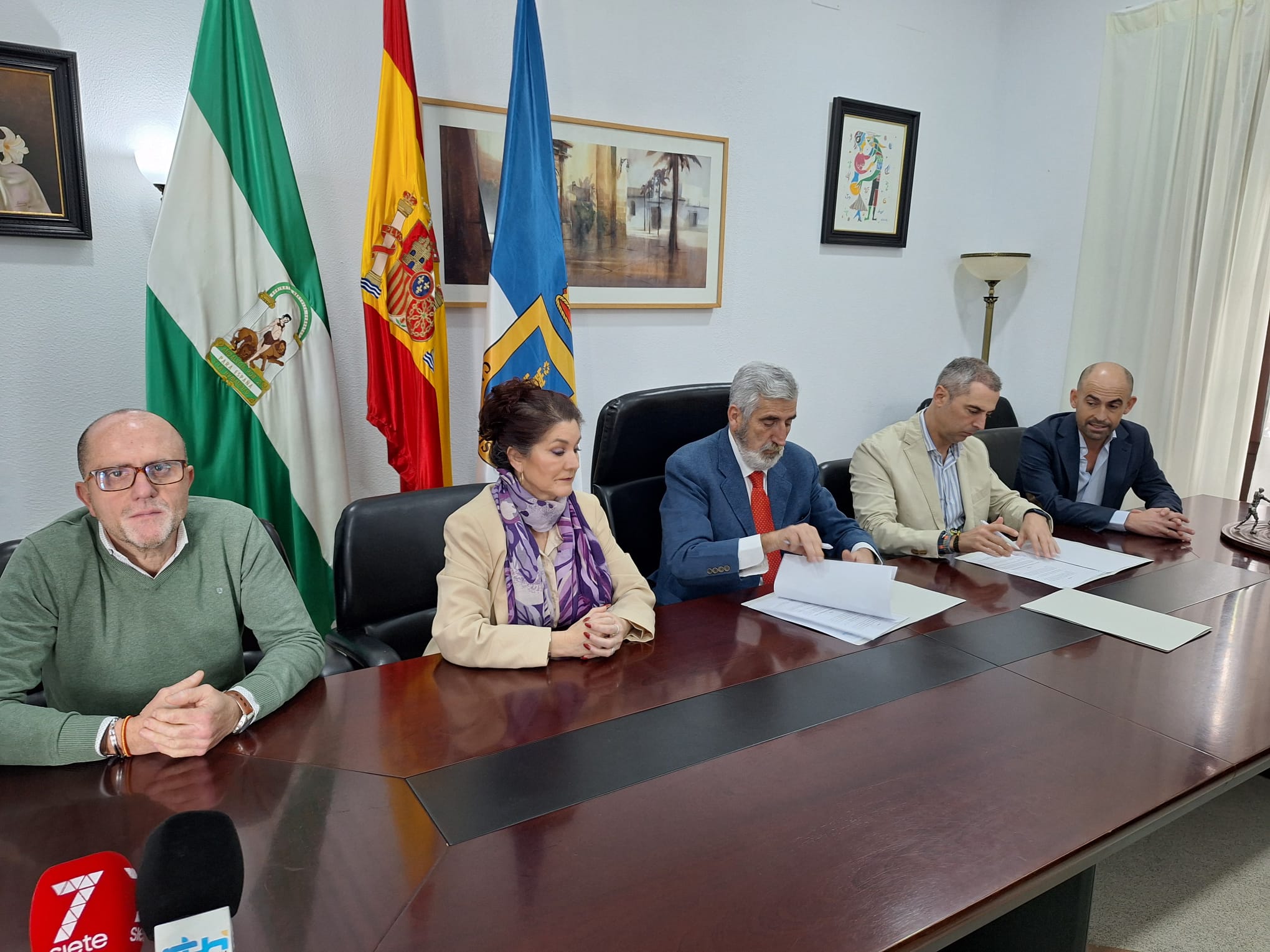 El alcalde, Luis Mario Aparcero, y el delegado de Aqualia en Cádiz, Emilio Fernández, han renovado hoy el acuerdo durante un acto en el Ayuntamiento. Asimismo, la concejala de Bienestar Social, Isabel María Fernández, ha querido aprovechar la ocasión para agradecer a Aqualia su compromiso en la protección de los colectivos vulnerables.