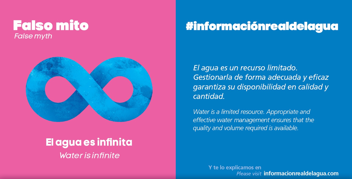 Mensualmente se irá ofreciendo, a través de la página web, la explicación, los datos y los argumentos que expliquen y desmonten falsos mitos. La Campaña se ha iniciado en el mes de enero en torno al mito “El agua es infinita”. En este caso, se exponen datos sobre la disponibilidad de agua dulce en el planeta, el consumo de agua en España, y la importancia de gestionarla de manera eficaz, dado que es un recurso limitado.