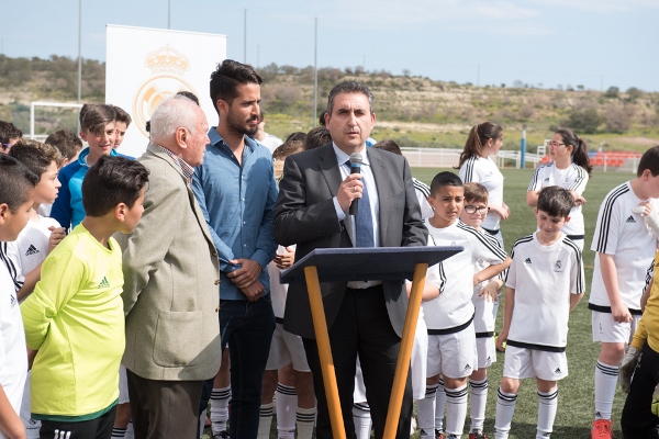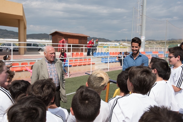 A Agustín Herrerín le acompañaban Eduardo Agulla, director técnico de escuelas sociodeportivas de fútbol del Real Madrid, Jonathan Araujo, coordinador de escuelas de fútbol de la Fundación Real Madrid y Ana Sanjanbenito, directora de comunicación. Por Aqualia asistieron Higinio Martínez, director de la delegación de Levante y Miguel Ángel Jiménez, delegado de la empresa en Mazarrón. Higinio Martínez agradeció en nombre de Aqualia al Ayuntamiento la oportunidad que le ha ofrecido “para colaborar en una estupenda iniciativa que promueve la educación en valores a través del deporte y el uso saludable del tiempo de ocio. Esta colaboración forma parte de nuestro compromiso con la sociedad, con los ciudadanos de los municipios en los que trabajamos. Más allá de la gestión del agua, colaboramos en iniciativas deportivas como esta que responden a las necesidades de la sociedad del futuro”, aseguró Hignio Martínez.