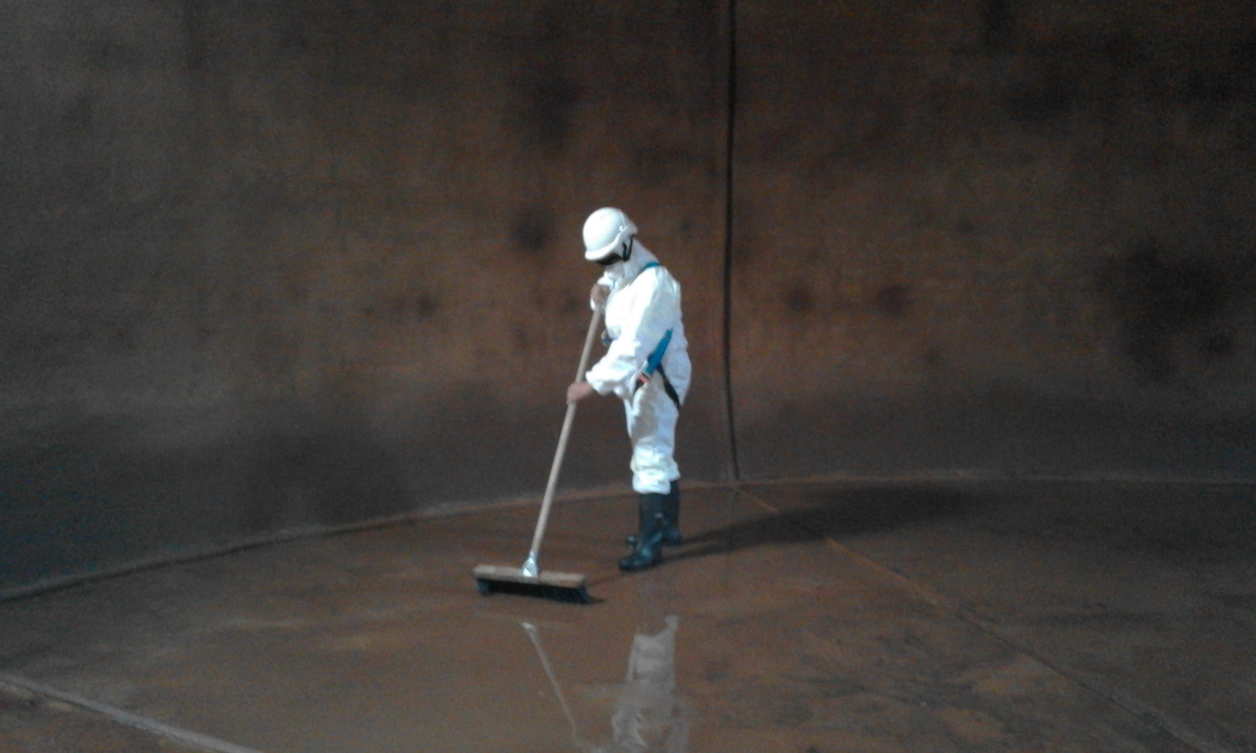 Estos trabajos, de los que se encargan 2 trabajadores, se ejecutan en tres fases; en una primera se realiza la limpieza con agua a presión para extraer los sólidos de las paredes y el suelo. Después se revisan y reparan, si es necesario, las válvulas, arquetas, cañerías y otros elementos del depósito, aprovechando que éste se encuentra vacío. Seguidamente se limpia con hipoclorito sódico aplicado mediante máquinas de alta presión que desincrustan y desinfectan las paredes para el control y prevención de la legionella. Finalmente, el vaso se aclara totalmente con agua para eliminar cualquier rastro de producto químico, y se vuelve a llenar procediendo a la comprobación analítica de la calidad del agua antes de restablecer el suministro.